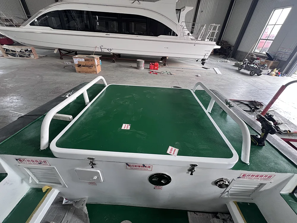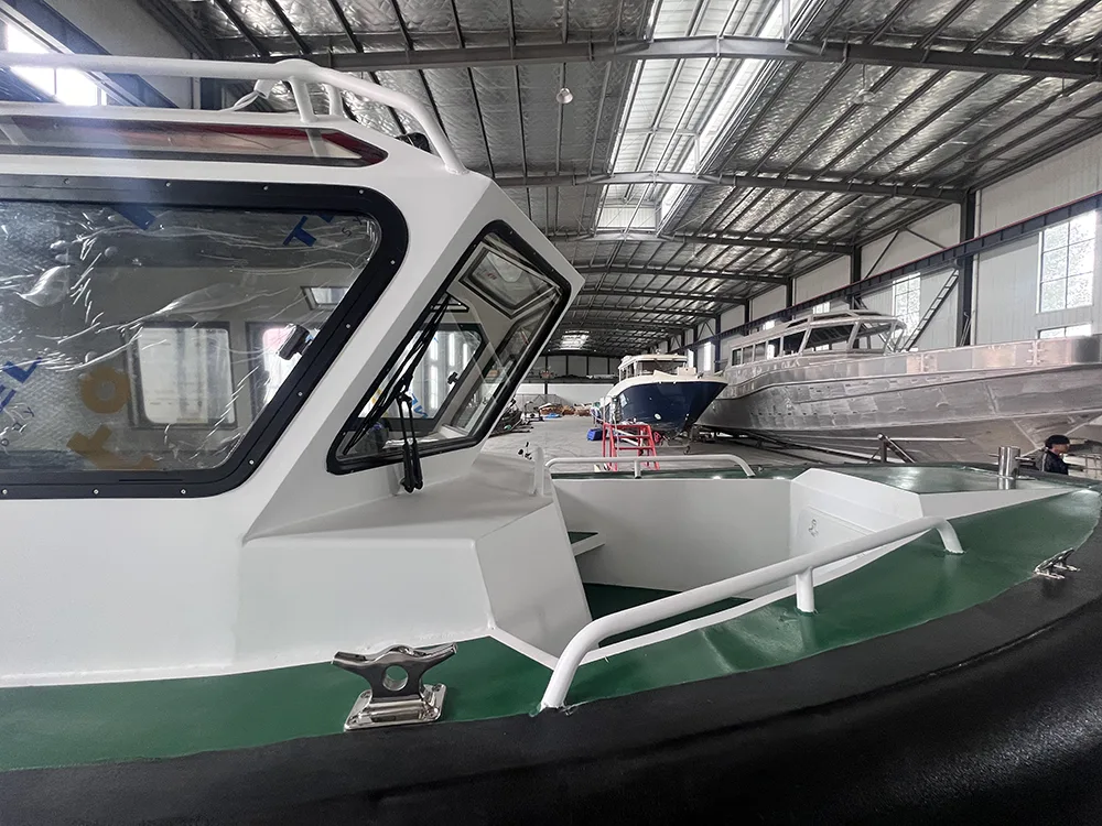 হুলটি 5083-H116 অ্যালুমিনিয়াম দিয়ে তৈরি, উচ্চ শক্তি এবং ভাল জারা প্রতিরোধের বৈশিষ্ট্যযুক্ত। পলিউরিয়া বুলওয়ার্ক (প্রভাব সুরক্ষা বাড়ানোর জন্য) এবং 316 স্টেইনলেস স্টিল হ্যান্ড্রাইল (স্থায়িত্ব এবং নিরাপত্তা নিশ্চিত করতে) সহ ইভা সলিড দিয়ে সজ্জিত,